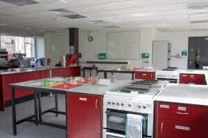 The Food Technology room is a great space for cookery classes or demonstrations. The fully-fitted classroom has access to ovens and other basic cooking and food preparation equipment. There are eight workstations with raised desks and stools.